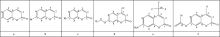 Table 1 lists the geometry structure parameters of the six compounds. In order to be more intuitive to see the change in bond lengths and bond angles, we have drawn the Fig.2 and Fig.3 that represented a change trend about part of bond angles and bond lengths. From the torsion angle data in Table 1, it is shown that the main structure of the six compounds is nearly in the same plane, forming a larger conjugated system. Among them, because of the influences of acetoxy and amino, the coplanarity of benzene ring worsened slightly. Such as torsion angle in compound-f, ∠C(6)C(7)C(8)O=176.304° ; in compound-e, ∠C(6)C(7)C(8)N=177.584° .