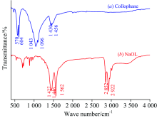 油酸钠和胶磷矿的透射红外光谱如图2所示。 谱线(a)显示了胶磷矿的透射红外光谱, 1 096和1 043 cm-1是P