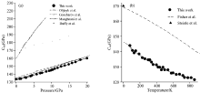 通过二阶多项式拟合我们得出剪切弹性参数C44与压力和温度的关系分别为