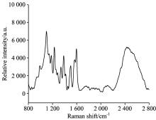 Fig.3 and Fig.4 showed the Raman spectra of the ligand TCNE and that of the complex at room temperature respectively. Carbon tetrachloride was used as the solvent. The spectral range was 300~3 200 cm-1. The liquid was loaded into the OTA-LK-1 liquid sample cell using a 2 mL glassinlet. The excitation wavelength was 532 nm. In the analysis process, it can be observed that the Raman peak of the complex (1 500 cm-1) was the strongest static Raman scattering spectrum, but the resonance Raman scattering spectrum of TCNE-1, 10-Phen (around 512 cm-1) was weaker and the Raman strength of the complex at 1 000~1 600 cm-1 was obviously enhanced. The resonant Raman scattering was strongly coupled at 1 000~1 600 cm-1, and these resonant Raman peaks were strongly enhanced due to the charge transfer between molecules.