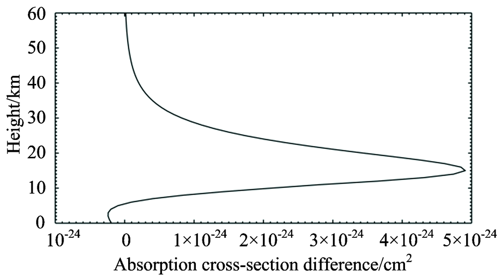 | 图2 伏格特线型和洛伦兹线型吸收截面差异随高度变化Fig.2 Absorption cross-section difference between Voigt and Lorentz line profiles |