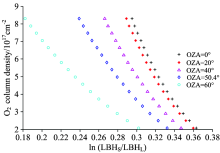 | 图3 不同太阳天顶角下氧分子柱密度与ln(LBHS/LBHL)关系Fig.3 Molecular oxygen column density vs. ln(LBHS/LBHL) in different SZA |