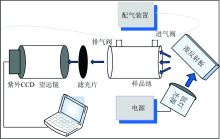 采用氙灯作光源, 为了在实验室内模拟太阳散射光, 我们使用了漫反射板。 氙灯的光辐射经漫反射板散射匀光, 在散射光场中依次放置长10 cm、 横截面直径2 cm的样品池; 中心波长为310 nm、 半高宽为10 nm的紫外带通滤光片; 焦距为100 mm的紫外接收望远镜以及可制冷的面阵CCD探测器。 探测器的温度为-15 ℃, 通过配气装置控制进入样品池的目标气体的浓度大小。 实验装置示意图见图1。