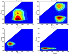 | 图1 用平行因子法识别出的土壤渗滤系统中DOM4个组分Fig.1 The four components of DOM in soil infiltration system identified by PARAFAC model |