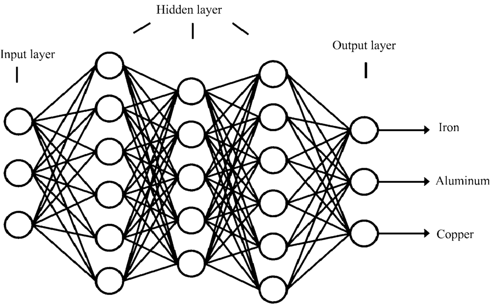 In this study, a multilayer perception (MLP) feed-forward network was applied for modeling the concentrations Fe3+, Al3+ and Cu2+, schematically shown in Fig.1. The logistic function was used as the activation function in a neural network.