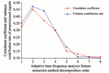 | 图2 各本征模态函数与原预处理后信号相关性与方差贡献率平均值结果Fig.2 The results of the correlation and the variance contribution rate between the intrinsic mode function and the signal after the preconditioning |