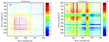 | 图6 化合物1在600~800 cm-1和温度50~120 ℃下的热微扰下的二维红外光谱Fig.6 Synchronous and asynchronous 2D correlation spectra of compound 1 between 600 and 800 cm-1 with the temperature in the range of 50~120 ℃ |
