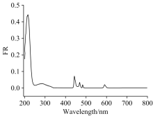 在室温下, 对化合物1进行固体紫外-可见(UV-Vis)漫反射光谱的测试, 如图8所示, 位于216 nm 处很强的紫外吸收峰归属于化合物1中EDTA配体的N原子上的孤对电子的反键轨道跃迁, 即n→ σ * 跃迁以及羧基π → π * 引起的。 由于化合物1是浅绿色的, 444, 468和484 nm的弱吸收峰, 可以归属为Pr3+的f— f跃迁引起。