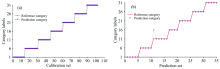 径向基核函数支持向量机(RBF-SVM)在低样本、 非线性和多维空间等模式识别方面有较强的优势。 在全波段范围内, 对原始光谱建立长枣贮藏时间的模型判别模型如图3所示。 图3(a)是校正样本训练模型, 得到RBF-SVM判别模型对长枣贮藏时间的判别率达98.04%, 所建模型可有效鉴别贮藏时间。 利用已建好的RBF-SVM校正模型对预测集样本的贮藏时间进行判别, 由图3(b)可以得出, 模型对预测集判别准确率高达97.14%, 模型可靠性和预测能力较好。