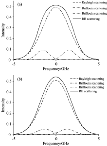当温度大于绝对零度时, 空气中的粒子都处于运动状态, 从而产生宏观弹性振动, 形成一个声波场。 当光从某个方向入射时, 会和该弹性声波场相互作用, 形成Brillouin散射。 Brillouin散射为非弹性散射, 回波频移大小在吉赫兹(GHz)范围, 与声音在介质中的传播速度有关, 表达式为
