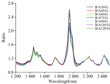 | 表5 不同龄期混凝土光谱B/A/G比值后光谱的特征丰度峰值 Table 5 Spectral characteristic abundance peaks of B/A/G spectral ratios of concrete at different ages |