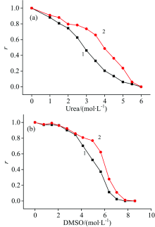 变性及荧光测定方法相同, 区别在于变性体系DMSO终浓度为0~12 mol· L-1。
