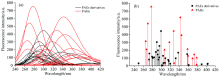 18种PAEs衍生物和16种PAHs分子的荧光光谱峰的分布特征结果如图2所示, 18种PAEs衍生物之间的最小波数差为0.46 nm大于荧光光谱检测仪器的最小分辨率0.30 nm[28], 加入16种PAHs分子后, 34种分子中的最小波数差为0.44 nm也大于荧光光谱检测仪器的最小分辨率0.30 nm。 任意PAEs衍生物之间、 与多环芳烃的荧光光谱峰之间的波数差较大, 在荧光光谱的可分辨范围内(0.30 nm), 可以排除内部干扰及PAHs等具有荧光特性污染物的外部干扰。