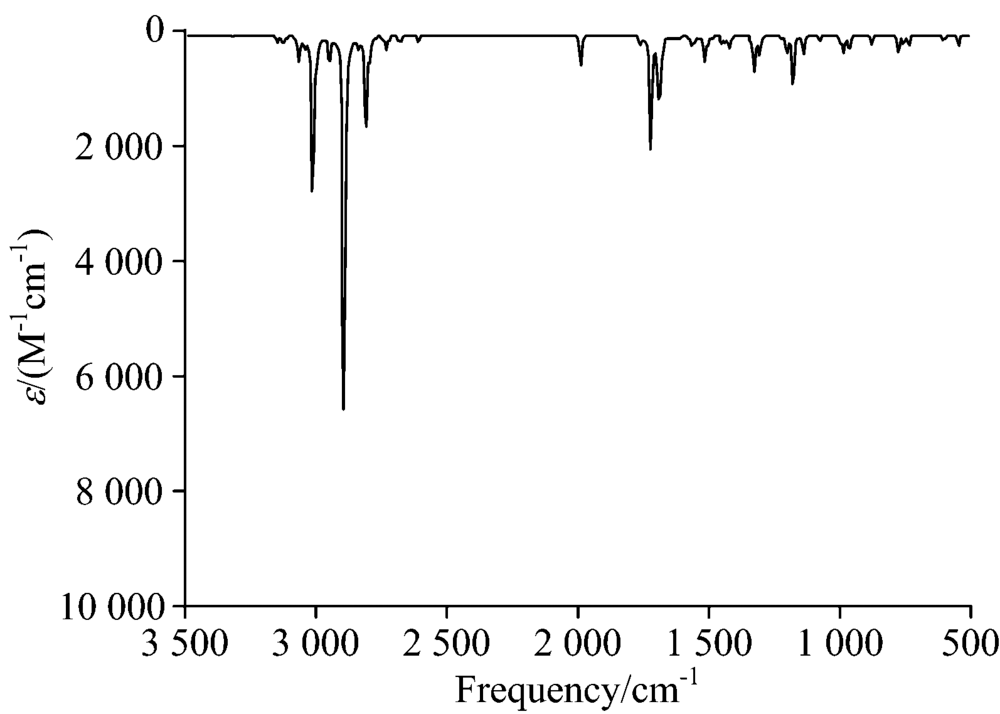 | 图3 B3LYP/6-311+G(d, p)计算得到的红外光谱(a)及局部放大的图(b)Fig.3 The calculated IR spectrum at B3LYP/6-311+G(d, p) (a) and the partial enlarged (b) |
