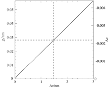 After that, we began to change the Δ r and calculate the corresponding values of Δ n and χ r. This dependence is shown on Figure 3 and due to small changes of values is approximately linear. Values of Δ r plotted on the axis X, χ r-left axis Y and Δ n-right axis Y. Horizontal dotted line corresponds to spectral resolution of measurements 0.028 nm. Because it is impossible to determine resonances position precisely that spectral resolution, this line defines the uncertainty of polystyrene bead refractive index ± 0.002 2. Vertical dotted line passes through the intersection of solid curve and horizontal dotted line, and defines the uncertainty of polystyrene bead size ± 1.48 nm.