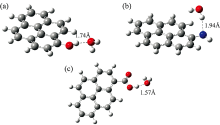 | 图3 (a)1-羟基芘、 (b)1-氨基芘和(c)1-芘甲酸与水结合的复合物结构Fig.3 The complex structure of (a) 1-Hydroxypyrene, (b) 1-Aminopyrene and (c) 1-Pyrenecarboxylic acid with water |