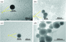 文献[9]报道, 光照时间是控制ZnSe量子点尺寸的主要影响因素。 为了进一步观察核壳结构变化, 分别增加ZnSe核和ZnS壳的光照时间, 出现了明显的核壳结构体积增大, 如图3(d)所示。 由于不可控因素, 如过长的光照时间, 不完整的修饰状态导致了量子点体积生长至几十纳米, 甚至更大, 明显超出量子点尺寸范围, 且有聚合倾向, 并伴有不均匀增长现象。