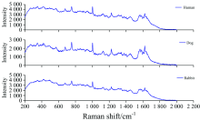 | 图3 人、 犬、 兔血清的拉曼光谱归一化后的对比Fig.3 Raman spectra of human serum, dog serum and rabbit serum after normalization |