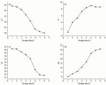 为直观地反映在贮藏期间样本的颜色变化, 图4给出样本L* , a* , b* , Δ E值随贮藏时间变化的折线图。