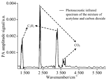 | 图3 混合气体(380 μ L· L-1CO2∶ 1 000 μ L· L-1 C2H2∶ N2) FTIR-PA谱图Fig.3 The FTIR-PA spectrum of the mixture(380 μ L· L-1CO2∶ 1 000 μ L· L-1 C2H2∶ N2) |