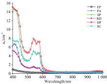 将皮肤组织各层的参数代入上式, 计算可得经过修正后的皮肤组织各层的光谱吸收系数曲线如图2。
