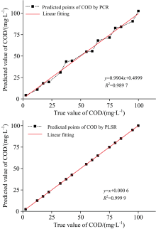 (1)通过实验证明了PCR和PLSR方法用于建立水质COD的荧光发射光谱数据模型的可行性; 表明两类模型均可以合理表征荧光强度与水质COD浓度之间的关系, 且PLSR模型的预测效果更优。