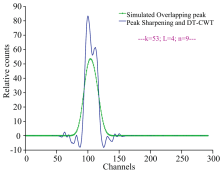 X射线荧光光谱分析是一种重要的放射性检测方法, 广泛的应用在地质、 环境和考古等领域。 重叠峰分解是X射线荧光光谱分析中至关重要的一步。 近年来, 国内外研究人员提出了多种重叠峰分解方法, 主要包括: 导数法[1]、 小波变换法[2, 3]以及Boosted-Gold反卷积法[4, 5]等。 当重叠峰分离度较低时, 上述方法很难实现分峰或分峰结果误差大。 林兆培等[6]将二阶微分与小波变换结合用于分解色谱重叠峰, 其仿真实验仅对分离度大于0.4的重叠峰实现了分离, 且没有对其分离结果的误差进行分析。 罗海军等[7]提出峰锐化法可以减小峰宽, 从而提高信号的分辨率。 朱晨超等[8]将双树复小波变换与实数小波变换进行对比, 结果发现双树复小波变换能够分解分离度更低的重叠信号且分峰结果更准确。 当试样中存在X射线能量十分接近的元素时, X射线荧光光谱的谱峰会严重重叠甚至完全重叠。 针对这一问题, 提出了一种峰锐化法结合双树复小波变换分解低分离度重叠峰的新方法, 来解决X射线荧光光谱中谱峰严重重叠的问题。