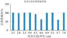 不同长度的鱼苗分类的准确率如图10所示, 观察可知, 鱼苗长度在为4.6和5.7 cm的时候, 鱼苗体长估算错误率最高, 4.6 cm的鱼苗易误分为4.3和4.9 cm, 5.7 cm的鱼苗容易分为5.3 cm, 鱼苗长度间隔在0.30.4 cm时, 算法的分类准确率会降低, 长度间隔大于0.5 cm鱼苗长度的估算准确率会大大提高, 从2.5~3.3, 4, 4.9和7 cm, 模型长度的估算值可以与人手工测量值相同。