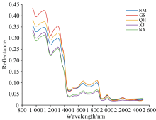 不同产地的宁夏枸杞的全波段(948~2 512 nm)平均反射率光谱如图2所示。 通过图2可以看出不同产地的平均曲线趋势相似, 但是每个波段对应反射率值不同, 代表内部的化学成分含量不同。 相似性可以体现在它们都是宁夏枸杞这一品种; 差异性的影响因素可能比较多, 包括地理环境, 天气, 种植培育过程等。