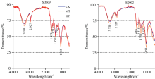 处理8 d后, 将玉米幼苗根、 茎、 叶烘干, 磨碎然后过0.2 mm网筛, 将样品与溴化钾(KBr)按1∶ 100的比例混合后, 放入玛瑙研钵中研磨混匀, 进行压片, 采用傅里叶变换红外光谱仪(Tensor Ⅱ , 德国布鲁克)测定玉米幼苗根、 茎、 叶的光谱特征(扫描范围4 000400 cm-1, 分辨率2 cm-1, 扫描次数64次)。