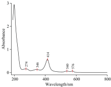 以2 mL去离子水稀释100 μ l待测Hb溶液样品, 紫外光谱扫描波长范围设定为190~800 nm, 精度± 0.1 nm, 测试前进行空白扫描与背景扣除, 每个样本重复测量3次, 取其均值图谱。