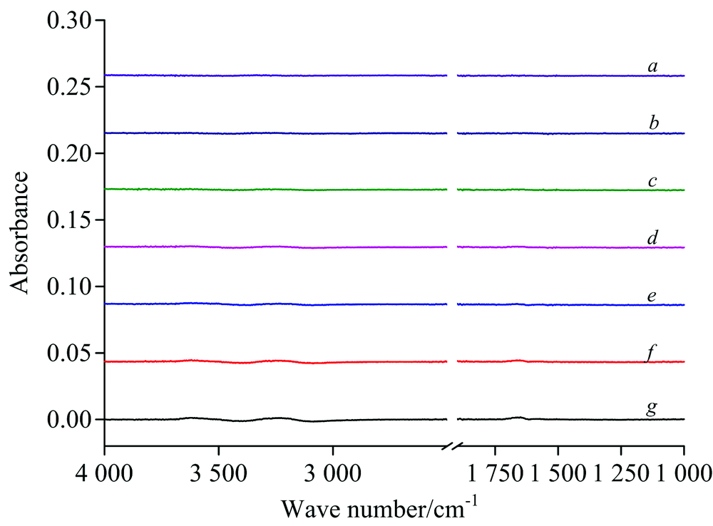 | 图1 不同浓度(0, 2%, 4%, …, 28%, 30%, 步长2%)NaCl水溶液的FTIR光谱Fig.1 FTIR spectra of NaCl aqueous solutions(0, 2%, 4%, …, 28%, 30%, step 2%) |