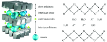 层状双金属氢氧化物(layered double hydroxide, LDH)通常也称为类水滑石化合物。 图6为LDH的结构示意图, 可以看出LDH每一层的层板由二价金属离子和半径大小相似的三价金属离子的氢氧化物交替组成, 层与层之间通过与阴离子的电荷相互作用以及与水分子形成的氢键结合起来, 因此在近红外区域具有较高的反射率, 且其层间保留的结晶水也在1 450和1 940 nm两处产生吸收。 2017年南京航空航天大学王晶等提出此类化合物可用于模拟植物叶片反射光谱, 采用共沉淀法制备出了以Mg2+和Al3+为层板金属阳离子的Mg-Al-LDH材料, 其在近红外光区(780~2 500 nm)与植物叶片的光谱相关系数超过0.960 0, 光谱夹角余弦值超过0.970 0, 且具有较好的热稳定性, 经过180℃热处理后光谱相似度并未明显降低。 2018年同课题组的杨玲等[16]改变了层板金属阳离子, 制备出了Mg/Al-LDH, Zn/Al-LDH和Zn/Mg/Al-LDH, 并测试了它们的红外发射率、 可见近红外光谱和热稳定性。 结果表明3种LDH中Mg-Al-LDH不仅热稳定性最好, 而且与绿色植被光谱在近红外光区反射光谱相似度最高, 达到0.974 1, 红外发射率也与绿色植被最为接近。