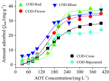 | 图5 与AOT作用后不同形貌COD晶体的吸附曲线Fig.5 Adsorption curves of COD crystals with different morphologies after reaction with AOT |