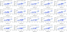 为了检验改进的QGA-ELM模型的普适性和有效性, 依次建立多元线性回归、 BP、 ELM、 QGA-ELM、 改进的QGA-ELM五种模型, 并在不同数据集上进行反演效果比较, 其中多元线性回归参数方程为: LAI=-0.41-1.20NDVI+2.65RVI, BP采用单隐层结构, 隐层节点个数通过经验公式确定范围, 再通过交叉验证确定为7, 输入层到隐层、 隐层到输出层传递函数分别“ tansig” 、 “ purelin” , 最大迭代次数为2 000, 误差设定为0.000 01。