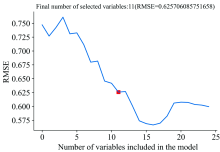 (1)SPA特征波长选择, SPA算法运行过程如图7、 图8、 图9、 图10所示, 孵化第3和5 d降维后的波段数分别为13和11。