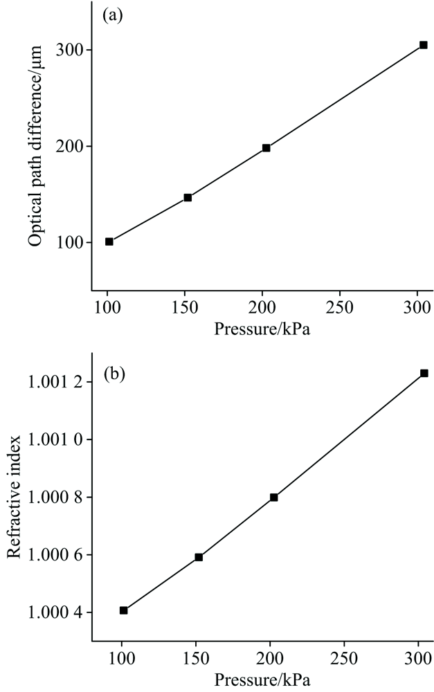 计算结果如图6(b)所示。 从图6中可以看出, 随着压力的增大, 气体折射率和光程呈正比例关系在增加。