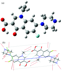 | 图1 诺氟沙星单分子(优化后, a)和晶体(b)结构Fig.1 The monomer (after optimization, a) and crystal structure (b) of Norfloxacin |