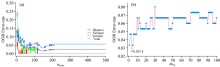 在默认参数(ntree=500, mtry=2)条件下, 使用训练数据集初步探索了RF模型对3省样本的袋外数据错误率(OOB Error), 模型的决策树数目在230~500时, 模型的袋外数据犯错率趋于稳定[图5(a)]。 随后, 使用“ randomForest” 软件包中“ tuneRF” 函数测试了1~100内的最佳mtry值, 当mtry为4时, 模型整体误判率为最低2.58%[图5(b)]。