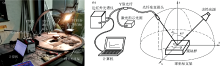如图1所示, 搭建方向反射测量球坐标实验装置, 该装置主要由球坐标支架、 100 W卤钨灯光源、 准直镜、 Y型石英光纤、 650 nm激光器、 PTFE参照白板、 荷兰Avantes AvaSpec近红外光纤光谱仪、 采集计算机组成, 其中近红外光纤光谱仪波长范围为1 000~2 500 nm, Y型光纤合并端连接准直镜, 一个分支端连接光谱仪用于光谱数据采集, 另一个分支端连接激光器用于指示探测位置, 准直镜固定于球坐标支架反射角滑轨用于收集反射光。
