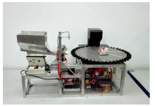 (1)将未剥壳的蚕茧放入左边进料口中, 机械臂会抓取蚕茧到转盘中。