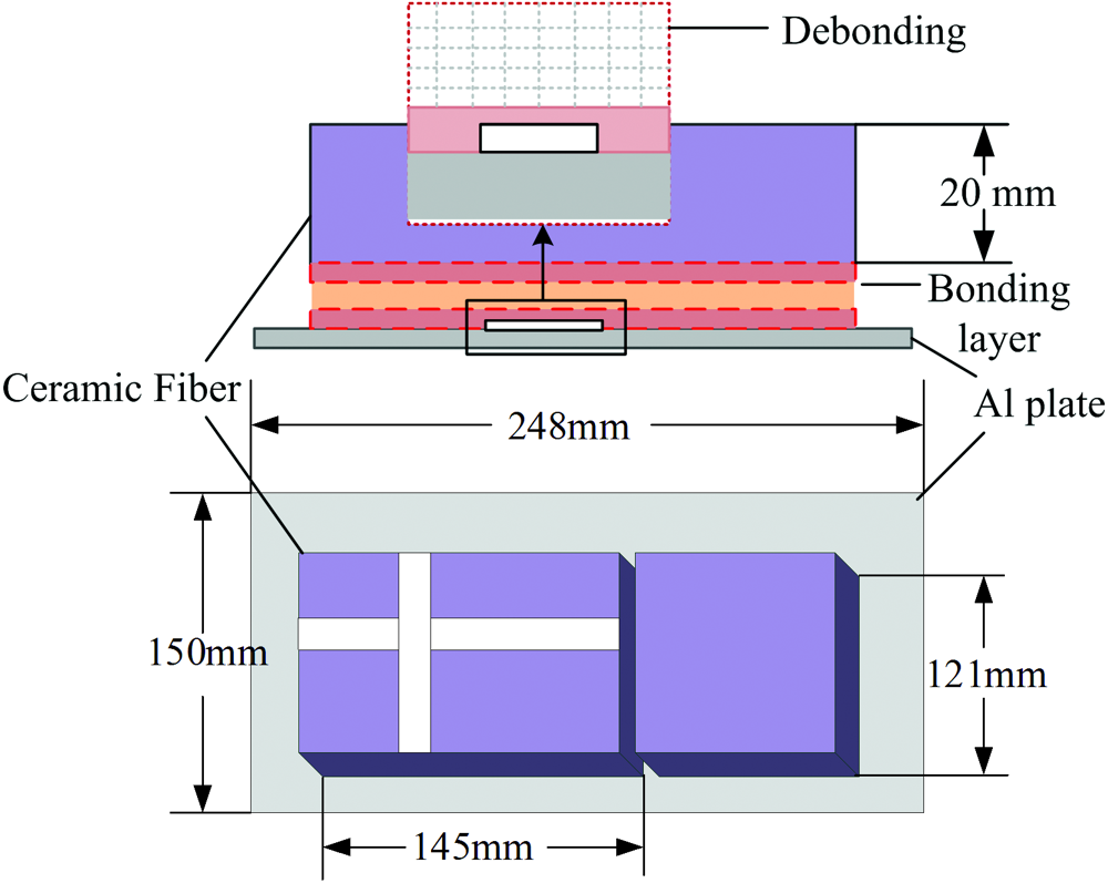 高超声速飞行器的热防护系统以先进隔热复合材料作为主体, 其中陶瓷纤维复合材料以其耐高温、 低密度和抗烧蚀等优异性能正逐渐替代航空领域传统隔热复合材料[1, 2]。 该类材料结构制造加工和使役过程可能因为工艺水平等因素存在材料内部孔洞、 裂纹和夹杂以及脱粘等缺陷, 特别是陶瓷纤维复合材料与飞行器基体装配过程中, 工艺原因导致材料不可避免地出现复合材料-基体粘接不良等缺陷, 因此进行其质量监控和无损检测尤其重要。