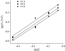 对于猝灭类型为静态猝灭的小分子与蛋白质的相互作用, 可采用式(3)计算其结合常数KA及结合位点n。