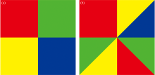 | 图2 (a)红、 绿、 黄、 蓝比例1:1:1:1; (b)红、 绿、 黄、 蓝比例3:2:1:2Fig.2 (a) Red, green, yellow, and blue materials in the ratio of 1:1:1:1; (b) red, green, yellow, and blue materials in the ratio of 3:2:1:2 |