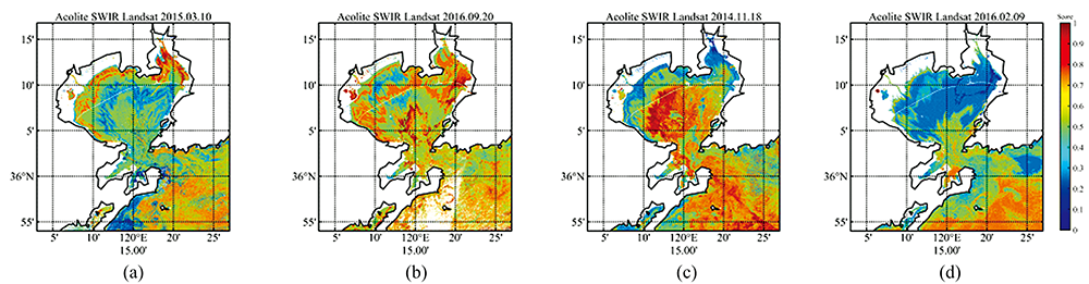 选用了2013年— 2017年胶州湾海域Landsat8/OLI的部分晴空数据(表2), 基于QA Score光谱质量评价体系对五种大气校正算法在该海域Landsat8/OLI的大气校正处理结果进行了评价分析。