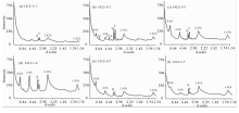根据结核显微结构, 我们利用微钻从结核的不同分层中钻取了粉末样品进行了XRD分析, 衍射图谱见图2。 水羟锰矿仅在~2.45和~1.42Å 存在不对称特征衍射峰, 布赛尔矿(7Å vernadite) 在~7, ~3.5, ~2.45和~1.42 Å 存在特征衍射峰, 水钠锰矿(10 Å vernadite)在~9.6, ~4.8, ~2.45和~1.42 Å 存在特征衍射峰[7]。 从图中可以看出, 所有分层样品中都存在石英和长石的衍射峰; 1412-1-1仅存在水羟锰矿的特征衍射峰[图2(a)]。 1412-1-2存在水钠锰矿和水羟锰矿的衍射峰, 两者信号强度接近, 还存在布赛尔矿的微弱衍射峰[图2(b)]。 1412-1-3/1412-1-4/1412-1-5存在水钠锰矿的衍射峰[图2(c, d, e)]。 1412-1-7存在水钠锰矿和水羟锰矿的特征衍射峰, 水钠锰矿衍射峰信号微弱[图2(f)]。