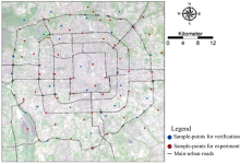 选取北京市区绿色空间常见植被大叶黄杨(Euonymus japonicus)作为试验对象, 大叶黄杨是多年生常绿灌木, 黄杨科黄杨属植物, 为中国特有植物, 具有耐阴抗旱、 枝叶茂密、 成活率高、 吸附有害物质能力强等特点。 基于广泛性、 均匀性、 规律性等采样点选取原则, 并参考先前研究成果, 分别设置实验采样点与验证采样点数量为50和25。 采样点均位于北京市区不同的绿色空间内, 采样点空间分布如图1。 采样时选择健康、 成熟与无损害的成熟叶片, 在每个采样点采集30个叶片。 在2021年4月7日上午8— 10点进行采样, 采用透明密封袋盛装样本, 并置于恒温储藏箱中(温度6 ℃, 湿度80%), 以保证叶片生物理化活性。