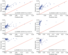均方根误差RMSE能够反映测量值和预测值的偏离程度, 其公式如式(9)所示, 其中yi和