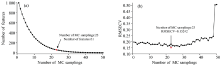 竞争性自适应重加权算法在每次循环中通过蒙特卡洛采样法从训练集中选出一定比例样本建立偏最小二乘(PLS)回归模型。 以指数衰减的方式去除回归系数较小的特征, 并在达到蒙特卡洛采样次数时停止, 以交叉验证均方根误差最小的特征集为最佳特征波长集。 设定采样次数为50, 采样比例为0.8。