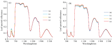 柑橘果实膨大期和转色期不同施氮处理叶片的反射光谱如图2所示。 不同施氮处理下, 柑橘果实膨大期和转色期的叶片反射光谱曲线相似, 在可见光350~700 nm波段区域内, 反射率随着施氮量的增加而降低, 而在近红外700~1 300 nm波段范围内, 反射率则随着施氮量的增加而增加。 在柑橘果实膨大期, 不同施氮处理叶片光谱反射率在550 nm处差异最大, N0、 N1、 N2和N3处理的反射率分别为0.169、 0.166、 0.154和0.128。 在可见光区域, 叶片光谱主要受叶片中色素的影响, 而在近红外区域, 叶片光谱主要受叶片内部组织结构的影响。